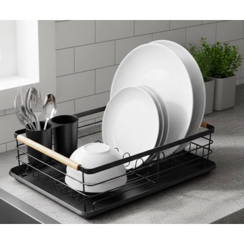 أضيفي لمسة من الأناقة والترتيب لمطبخك مع مجفف الأطباق الفاخر. يتميز بتصميمه العصري باللون الأسود المطفي مع لمسات خشبية دافئة تجمع بين الرقي والعملية.