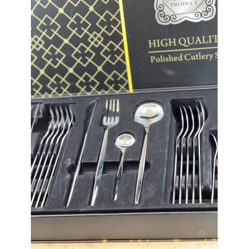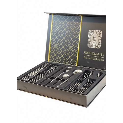 أضف طابعاً من الفخامة إلى مائدتك مع طقم أدوات المائدة المصقولة عالية الجودة. صُمم هذا الطقم خصيصاً لمن يبحثون عن التميز، حيث يجمع بين التصميم العصري الأنيق والدقة في التنفيذ.
