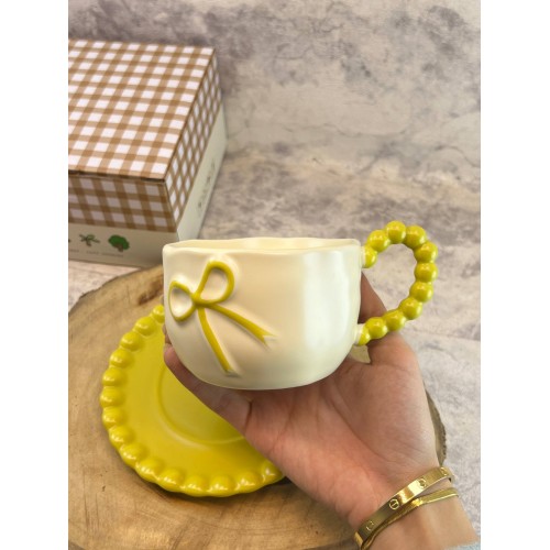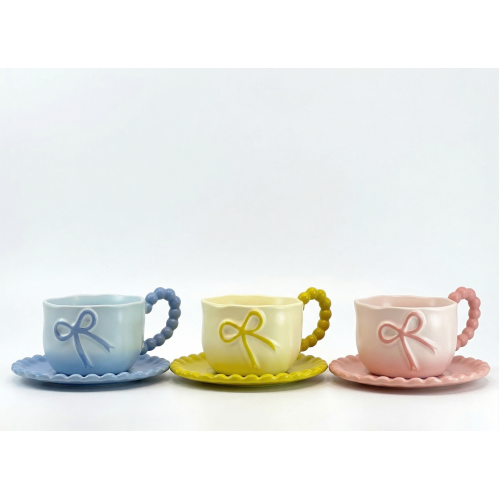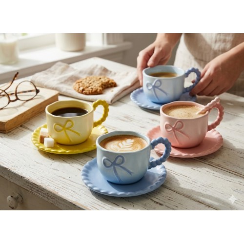 ارتقِ بتجربة احتساء الشاي إلى مستوى جديد من الرقي مع مجموعة أكواب الشاي بالفيونكة، التي تمزج بين البساطة والرقي بلمسة من السحر. تتميز هذه المجموعة بتصميم الفيونكة البارزة على كل كوب، بالإضافة إلى المقابض المزينة بخرزات، لتضفي لمسة من الأناقة المرحة على أي طاولة. صُنعت الأكواب من سيراميك عالي الجودة بألوان الباستيل الهادئة (الأزرق الفاتح، الأصفر المشمس، والوردي الخوخي)، مما يجعلها تحفة فنية تستحق الاقتناء. تعتبر هذه المجموعة خيارًا مثاليًا للنزهات مع الأصدقاء، أو كهدية مميزة لشخص عزيز عليك.