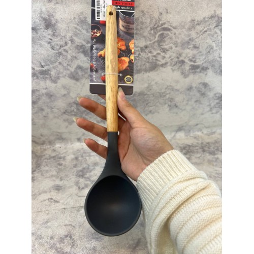 مغرفة سيليكون يد خشب