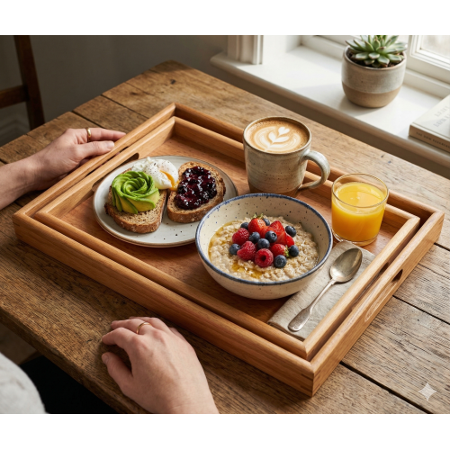 الكلمات الدليليلة : صواني خشب، طقم تقديم، خشب زان، ديكور منزل، أدوات مائدة، صواني تقديم فاخرة