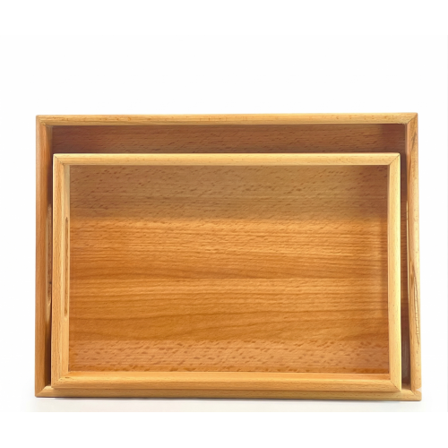 - النوع : طقم صواني تقديم مستطيلة قطعتين - خشب زان