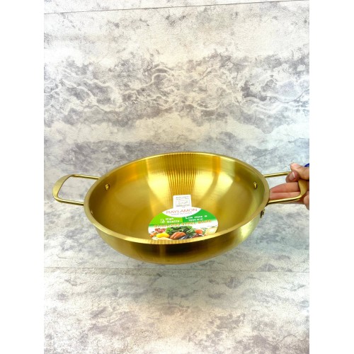 استمتعي بتجربة طهي استثنائية مع "ووك" Raylamon الذهبي. يجمع بين المتانة العالية بفضل الستانلس ستيل المقاوم للصدأ، وبين التصميم العصري الذي يضيف فخامة لمطبخك وسفرتك.