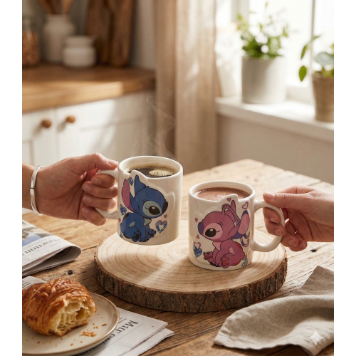 هل وجدت تجربتك؟ احتفل بنصفك الآخر مع طقم أكواب "ستيتش وأنجل" الرائع والمتداخل. صُممت هذه الأكواب السيراميك عالية الجودة لتكتمل معاً تماماً مثل هذا الثنائي الفضائي، وتتميز بتفاصيل بارزة ثلاثية الأبعاد ولمسات رقيقة من القلوب. الهدية المثالية لذكرى الزواج، أو حفلات الزفاف، أو مجرد تعبير عن الحب لعشاق ديزني.