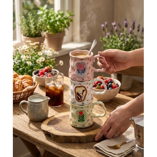 الكلمات الدليليلة : كوب سيراميك متموج، مج رسومات ورد، أدوات مائدة فنية، ديكور مطبخ ريفي، هدايا راقية، أكواب قهوة مميزة، مجات سيراميك مودرن، طقم ضيافة أنيق، أدوات منزلية غريبة.