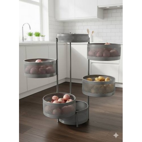 متعدد الاستخدامات. متين. عصري. الحل الأمثل للتخزين في المنزل الحديث. يجمع الحامل الدوار متعدد الطبقات بين المظهر الصناعي الأنيق والوظائف العملية القصوى. تحافظ السلال الشبكية على تهوية أغراضك وسهولة رؤيتها.