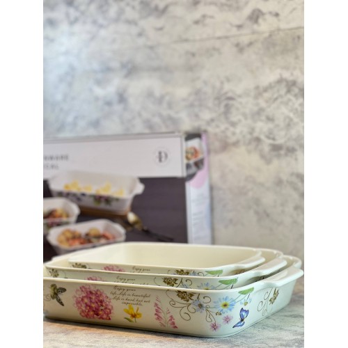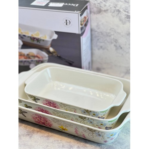 طقم صواني فرن سيراميك بنقوش الزهور – 3 قطع