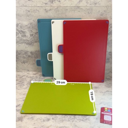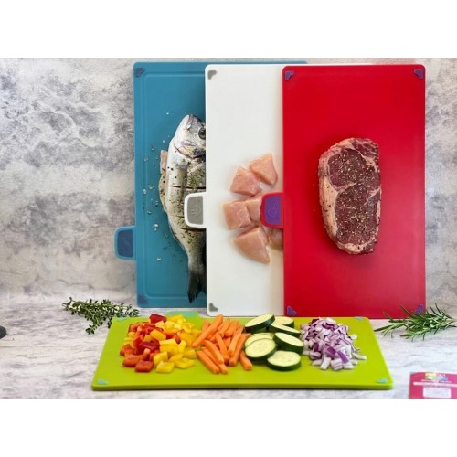| الوصف | نظام تصنيف ذكي: يشتمل الطقم على ألواح بألوان مختلفة مع مؤشرات بارزة (أيقونات) لتخصيص كل لوح لنوع معين من الطعام (لحوم، أسماك، خضروات)، مما يمنع التلوث التبادلي. تصميم عملي وموفر للمساحة: تتميز الألواح بتصميم نحيف يسهل تخزينها بشكل منظم دون أخذ مساحة كبيرة في المطبخ. ثبات فائق أثناء الاستخدام: زوايا الألواح مزودة بقطع سيليكون مانعة للانزلاق لضمان الثبات والأمان التام أثناء التقطيع. خامات آمنة وصحية: مصنوعة من بلاستيك عالي الجودة وخالي من المواد الضارة، وهي لطيفة على الشفرات ولا تسبب تلميم السكاكين. سهولة التنظيف: الألواح مصممة لتكون مقاومة للبقع والروائح، وآمنة للغسل لضمان أعلى مستويات النظافة. |
