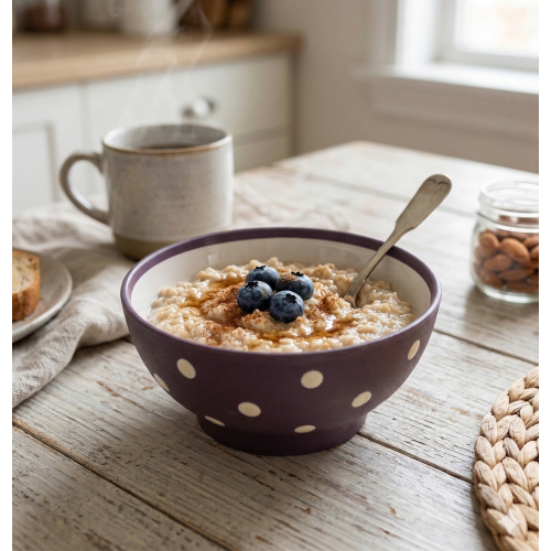 أضيفي لمسة من الأناقة العصرية لمائدتك مع وعاء السيراميك المنقط. بتصميمه الفريد ولونه الأرجواني العميق، يجمع هذا الوعاء بين الرقي والجمال ليكون القطعة المثالية لتقديم الحبوب، الشوربة، أو السلطات. حوّلي كل وجبة إلى تجربة استثنائية تعكس ذوقك الرفيع.