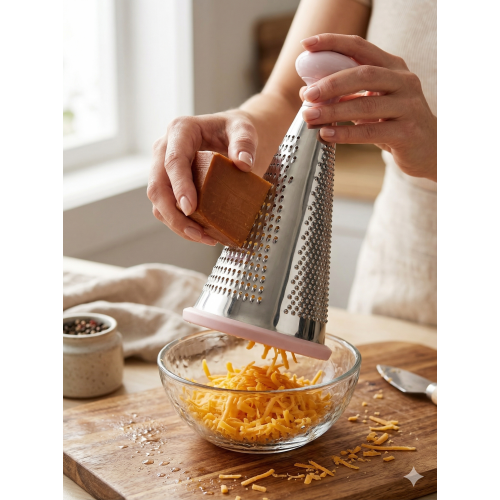 اجعل مهام المطبخ اليومية أكثر سهولة وأناقة مع هذه المبشرة الهرمية العصرية! ✨ تصميم يجمع بين القوة والشكل الجمالي ليناسب مطبخك الحديث.