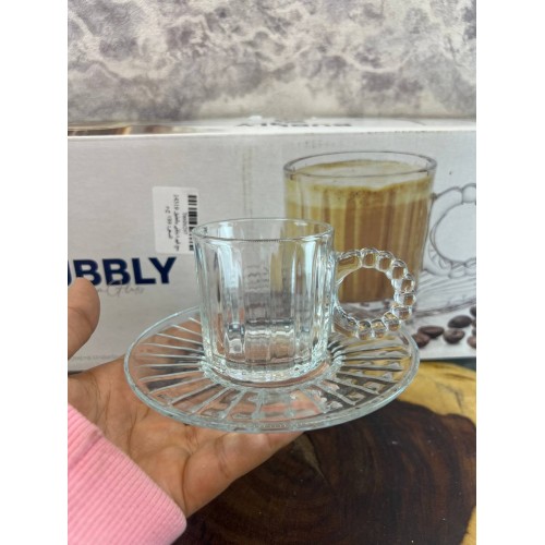مج قهوة زجاجي مضلع مع طبق 6ق