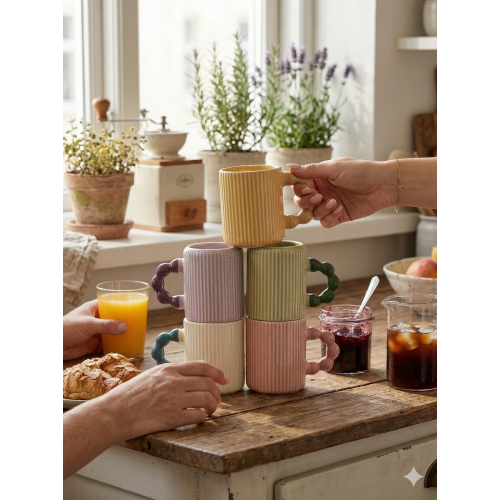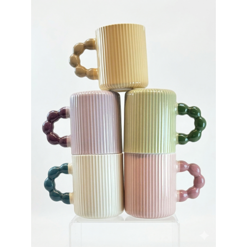 الكلمات الدليليلة : كوب سيراميك مضلع، مج مقبض فقاعات، أكواب باستيل، أدوات مائدة مودرن، ديكور مطبخ نورديك، هدايا مميزة، مجات سيراميك أنيقة، أطقم قهوة عصرية، أكواب بمقبض غريب.