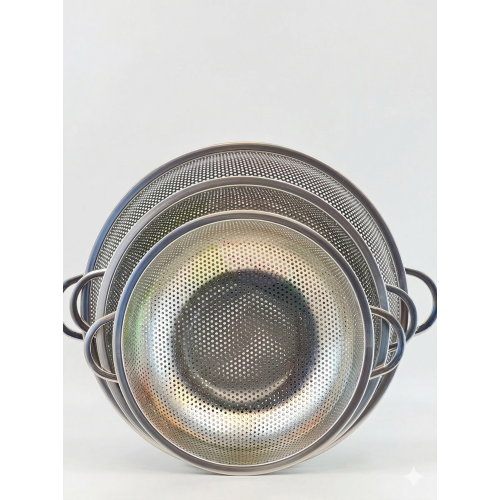 جددي مطبخك بأفضل الأدوات! ✨ استمتعي بمزيج مثالي من المتانة والعملية مع طقم المصافي الستانلس ستيل المكون من 3 قطع. مصممة لتسهيل عملية تصفية وغسل الخضروات، الفواكه، والمكرونة بكل سهولة. مصنوعة من ستانلس ستيل عالي الجودة ومقاوم للصدأ، مع مقابض قوية وتصميم عصري يناسب كل مطبخ.