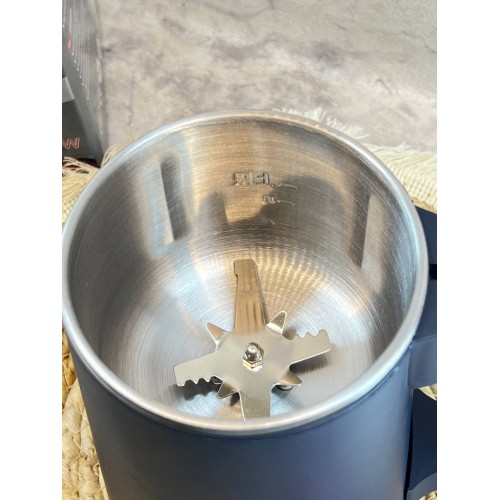 الوصف أداء قوي ومتعدد الاستخدامات: صُممت خصيصاً لطحن حبوب القهوة، التوابل، المكسرات، والحبوب الجافة بسرعة وكفاءة عالية. جودة تصنيع فائقة: يتميز الهيكل الداخلي والشفرات بأنها مصنوعة من الفولاذ المقاوم للصدأ (Stainless Steel) عالي الجودة لضمان المتانة والنظافة. تصميم عصري وعملي: تأتي المطحنة بلون أزرق مطفي (Matte Blue) أنيق مع مقبض جانبي مريح لسهولة التحكم أثناء الاستخدام. سهولة التشغيل والمراقبة: مزودة بغطاء شفاف يتيح لك رؤية ومتابعة درجة الطحن المطلوبة بوضوح تام.