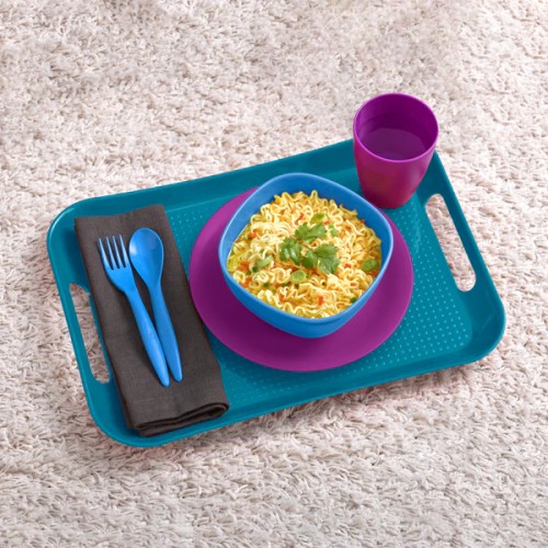 تسمح لك الأطراف العميقة والسطح المموج بحمل أدوات المائدة الخاصة بك دون أن تنزلق. صُنعت صواني التقديم من مادة البولي بروبلين شديدة الصلابة،