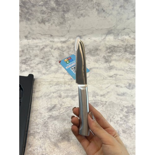عصري. بسيط. حاد. القطعة الأساسية في مطبخك لكل من يقدر الأناقة والجودة معاً. أضف هذا السكين المعدني الأنيق إلى مجموعتك اليوم.